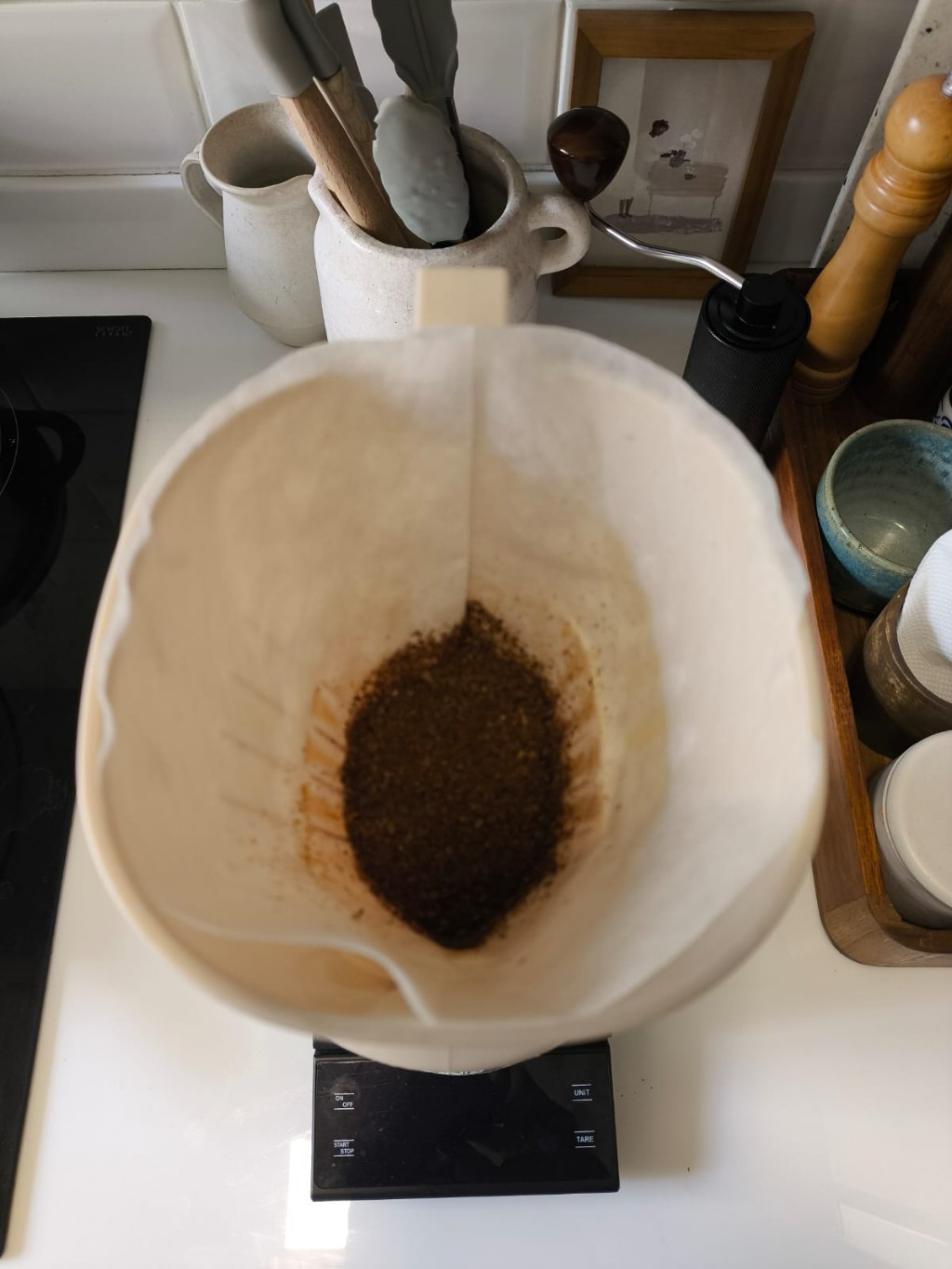 Moagem: médio-fino (um ponto mais fino que o padrão do seu V60)